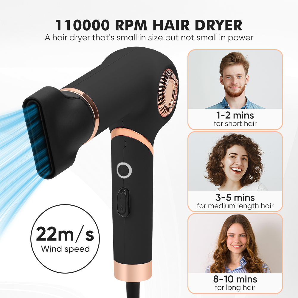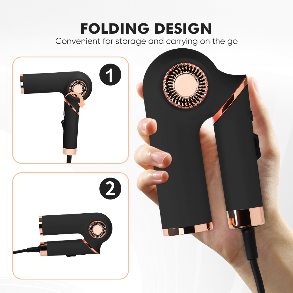 Your position:Home>>Beauty & Personal Care>>Hair Dryer Brush>>Foldable High Speed Hairdryer 1400W Private Label Electric Professional Salon 110000 Rpm Hair Dryer (Black)