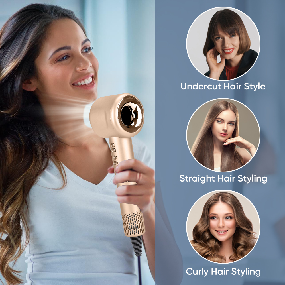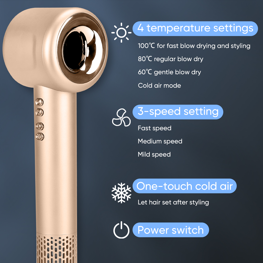 Your position: Home>> Beauty & Personal Care>> Hair Dryer Brush>> Powerful Fast Drying 110000rpm Ionic Hair Dryer Blow Dryer Fast Dry Low Noise Blow Dryer(Gold)
