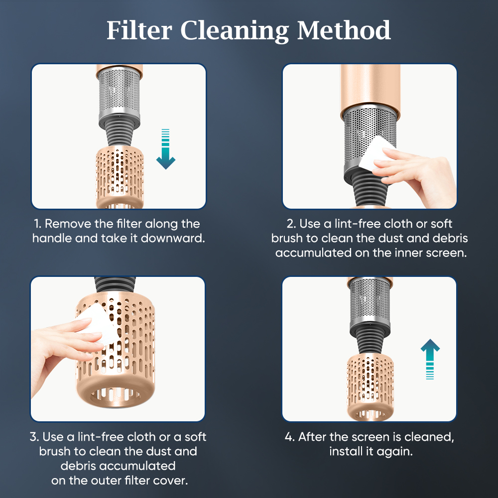 • Super hair dryer have 3 new version magnetic styling accessories:styling nozzle,smooth nozzle,diffusion nozzle for different hair style using.This hair dryer with safely filter prevent hair from being sucked into the hair dryer and cleaning timely.