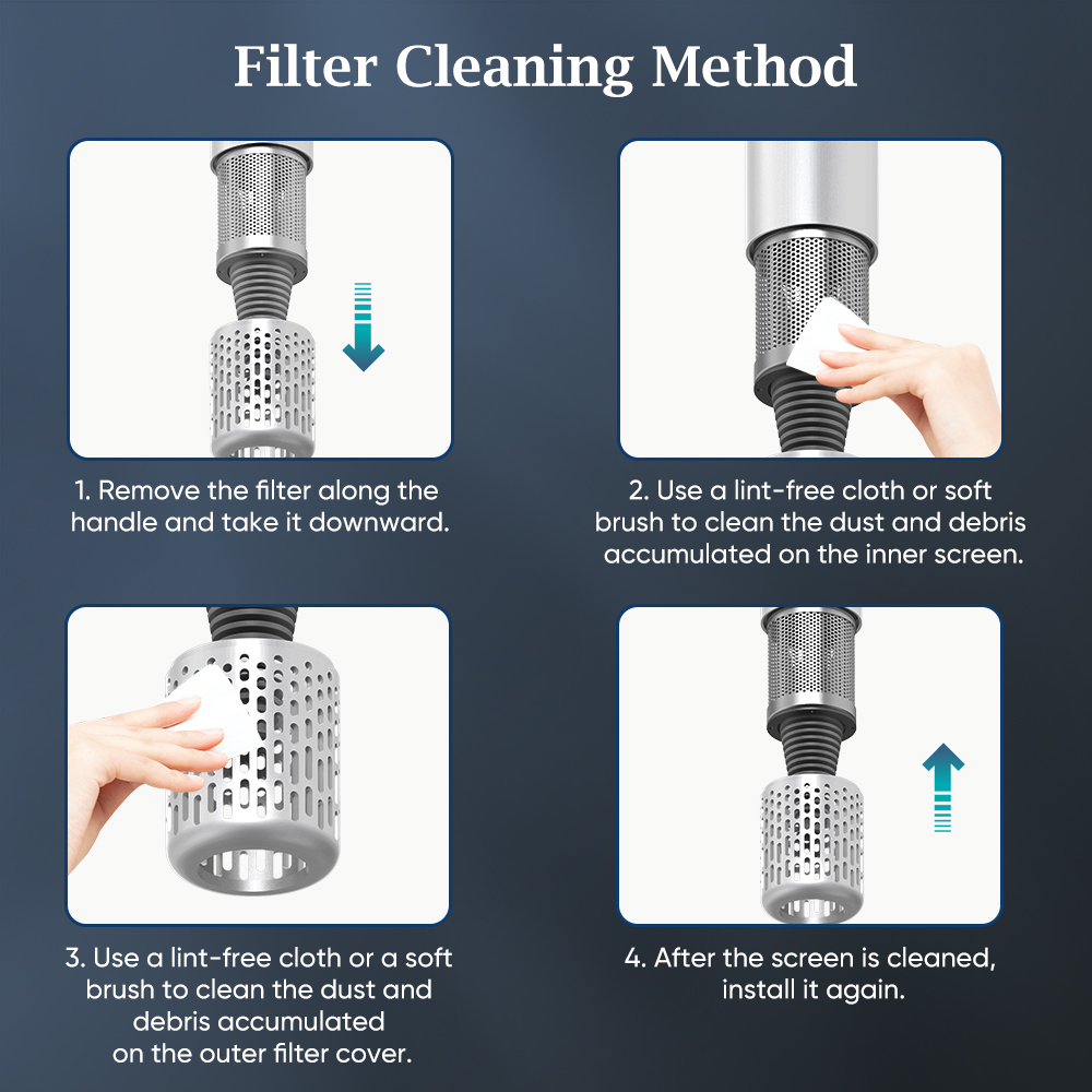 Super hair dryer have 3 new version magnetic styling accessories:styling nozzle,smooth nozzle,diffusion nozzle for different hair style using.This hair dryer with safely filter prevent hair from being sucked into the hair dryer and cleaning timely.