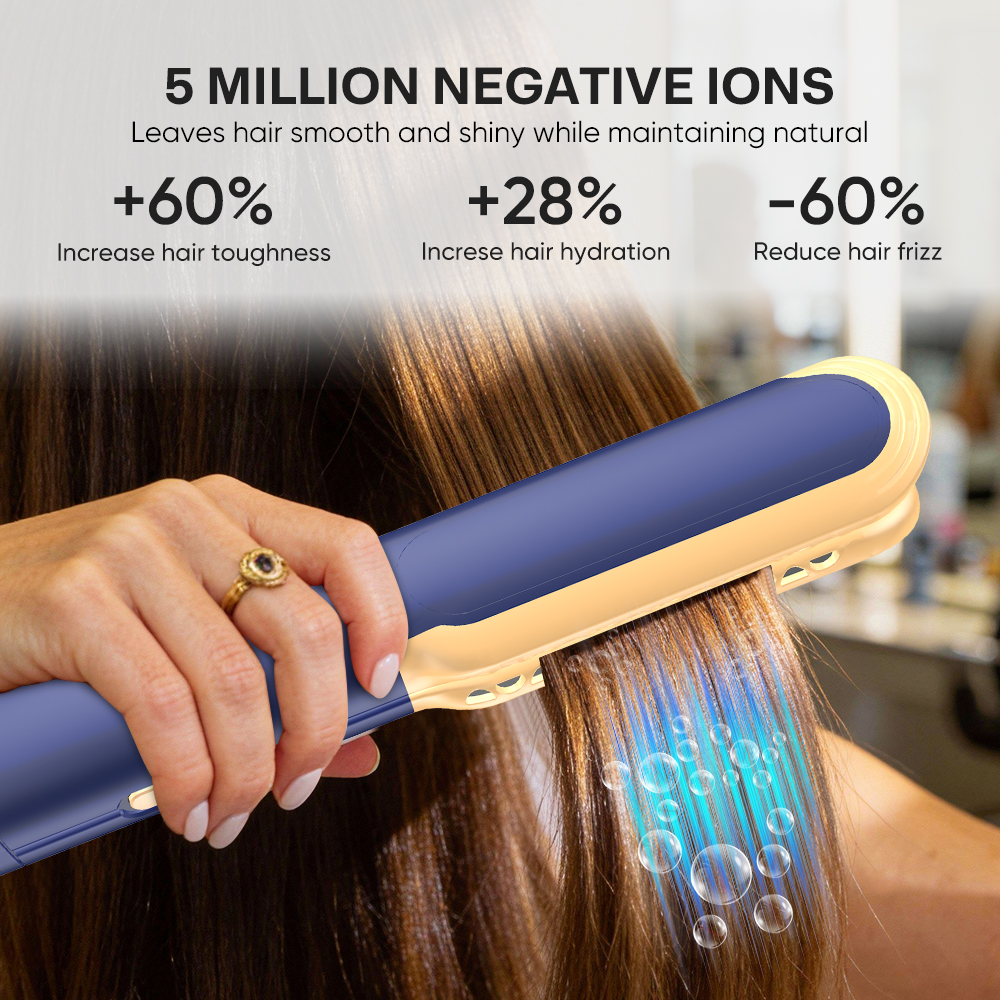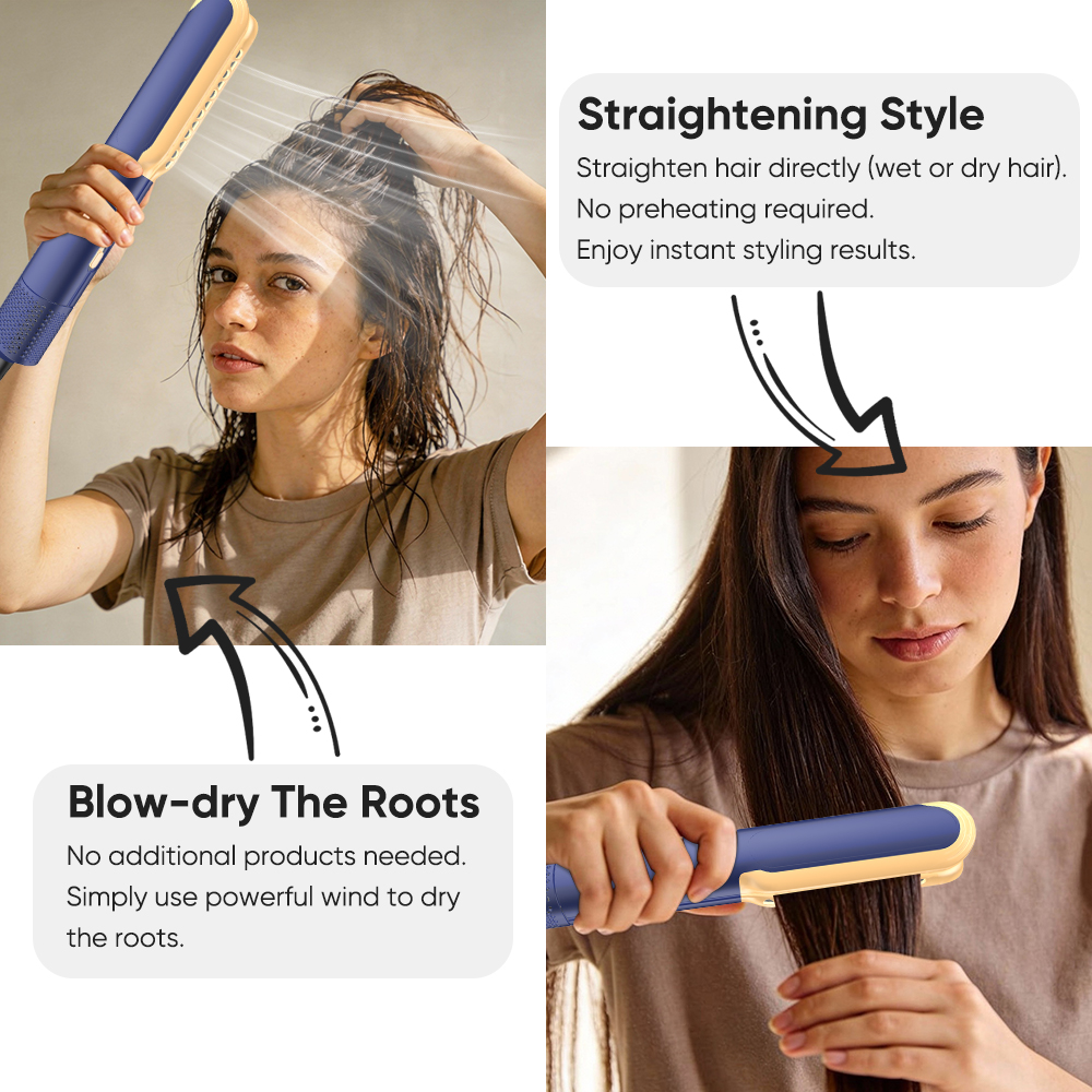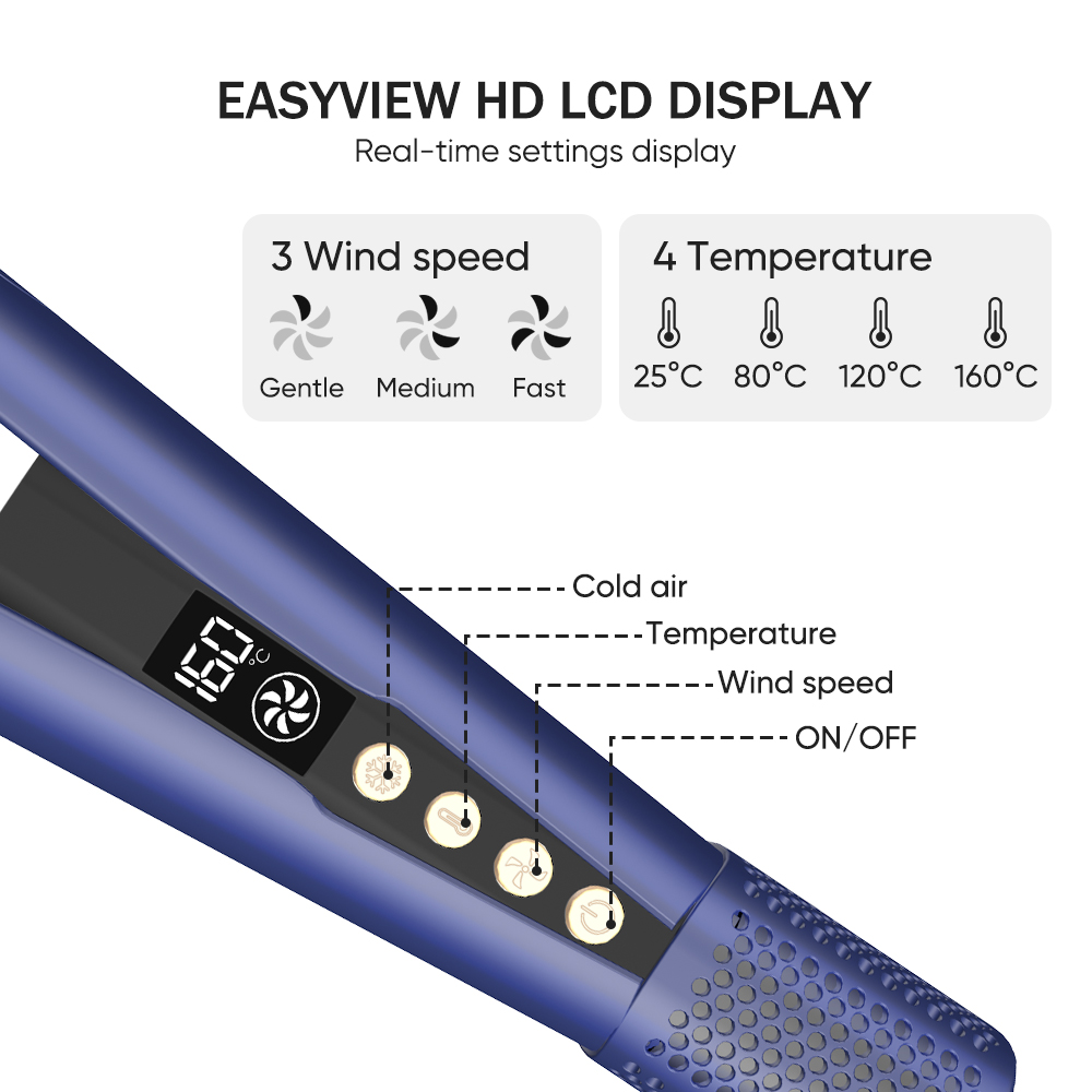 Rapid Heat Up LCD Display High Speed Ionic 2 in 1 Wet to Dry Hair Dryer and Straightener with Air (Blue)