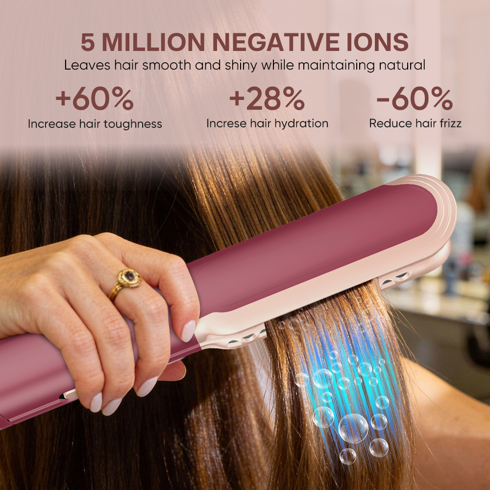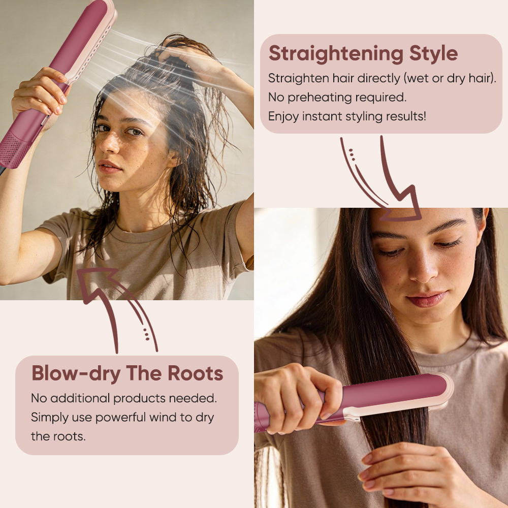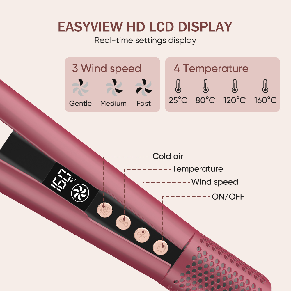 Rapid Heat Up LCD Display High Speed Ionic 2 in 1 Wet to Dry Hair Dryer and Straightener with Air (Red)