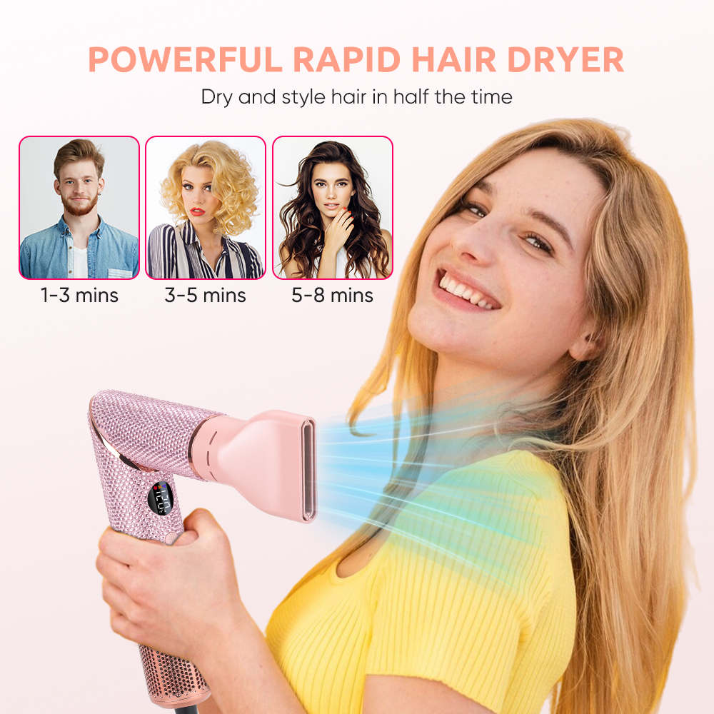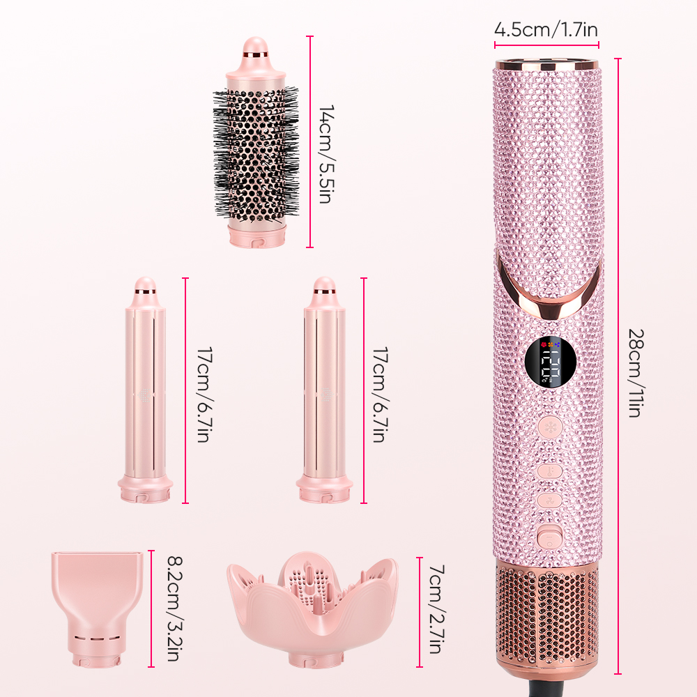 New Launch 5 in 1 Hair Styler Professional Hair Dryer 110000Rpm High Speed Blow Dryer Brush Ionic Multi Styler (Pink Diamond)