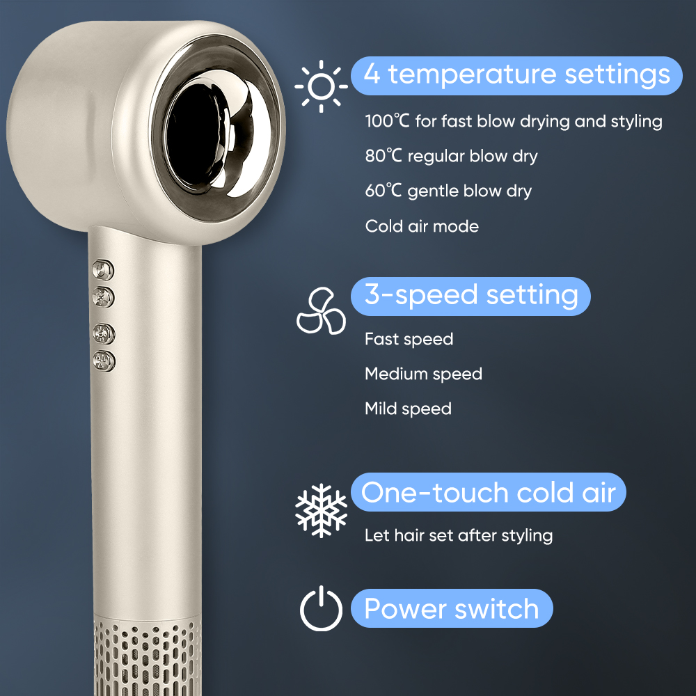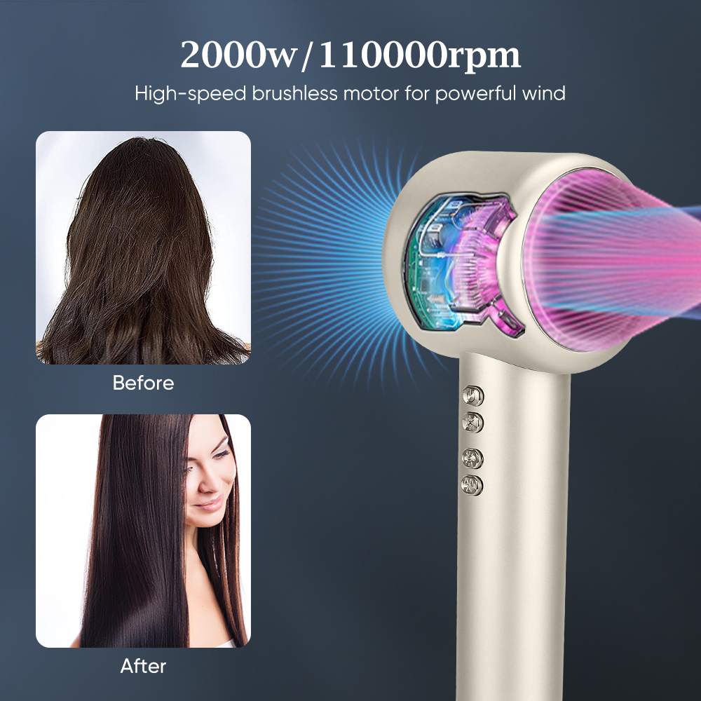 Your position: Home>> Beauty & Personal Care>> Hair Dryer Brush>> Powerful Fast Drying 110000rpm Ionic Hair Dryer Blow Dryer Fast Dry Low Noise Blow Dryer(Champagne Gold)
