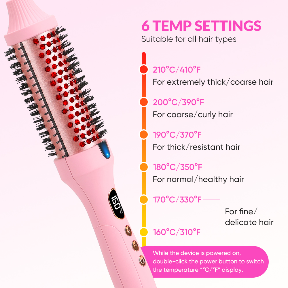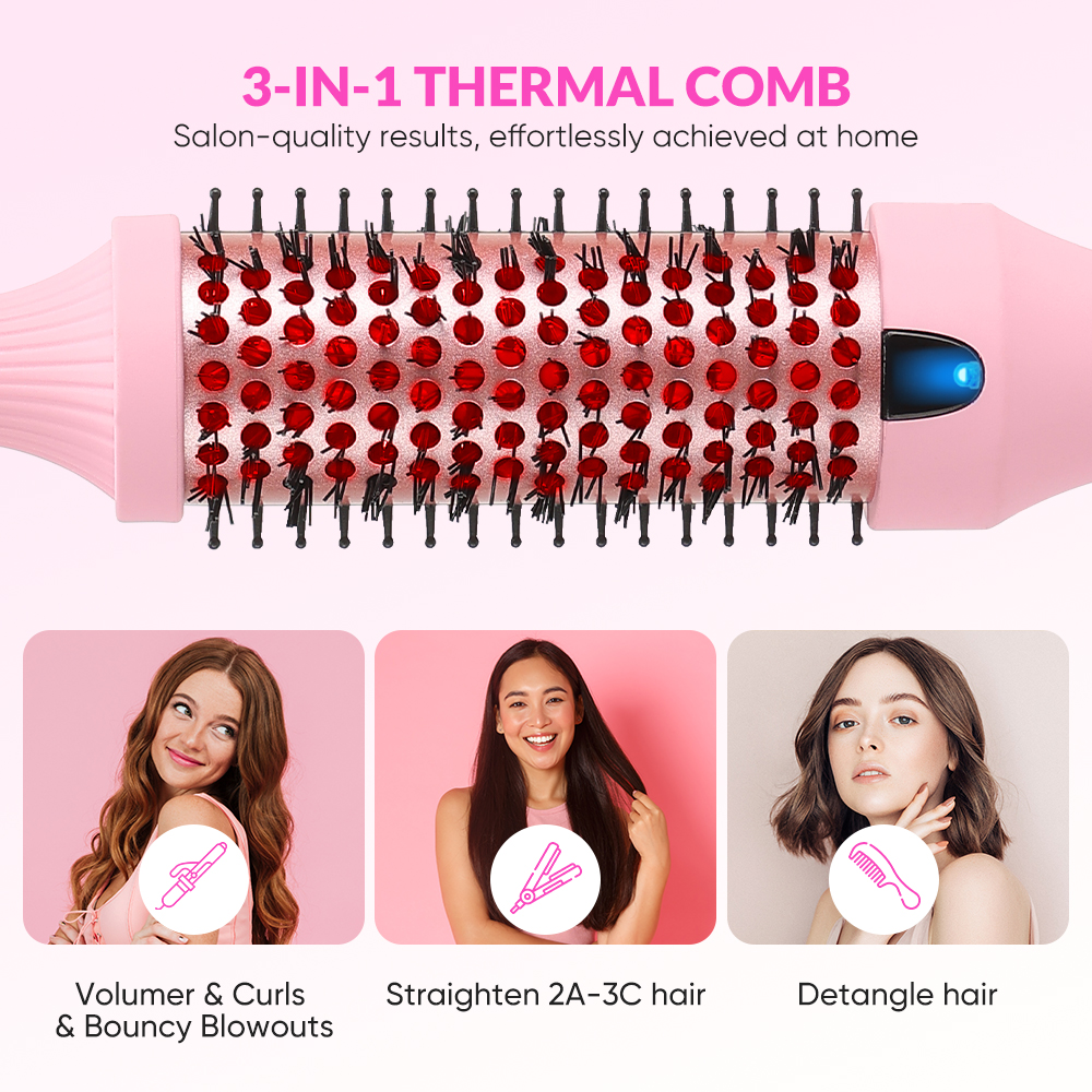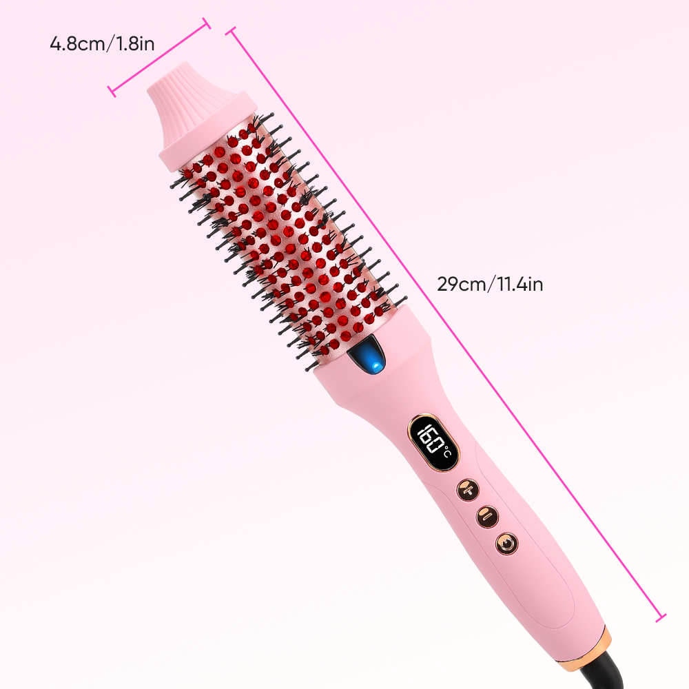 Professional Ceramic Infrared Thermal Curling Brush PTC Heated Hair Straightener Comb with LCD Display (Pink)