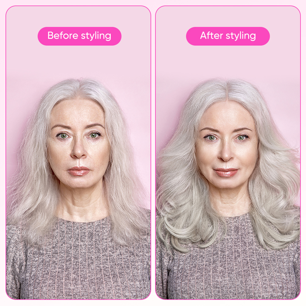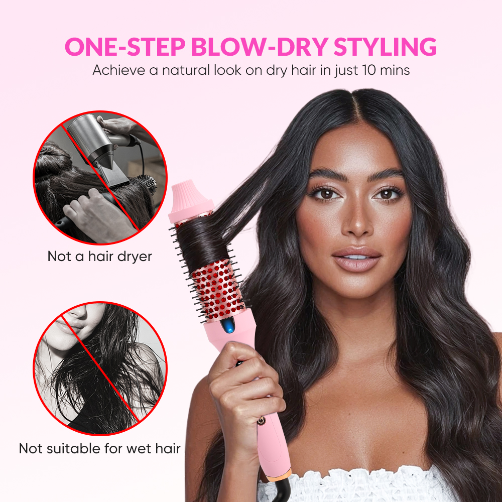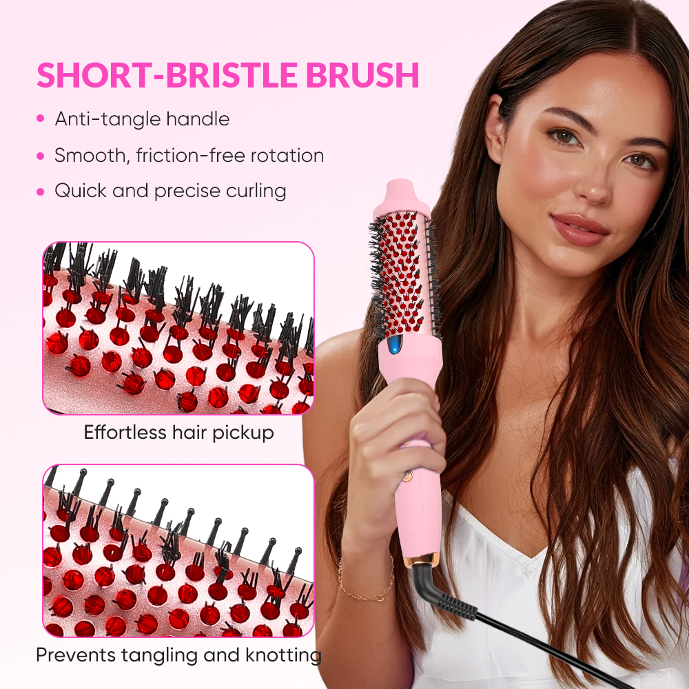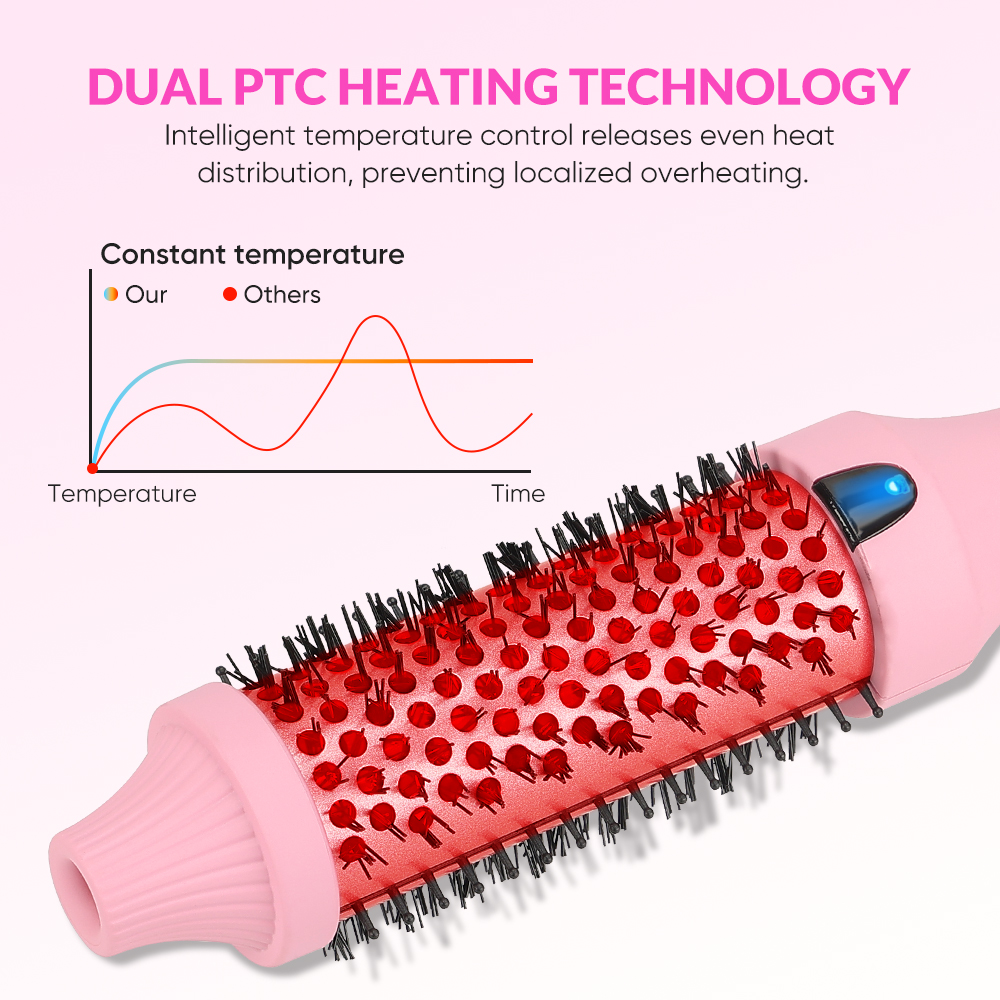 Professional Ceramic Infrared Thermal Curling Brush PTC Heated Hair Straightener Comb with LCD Display (Pink)