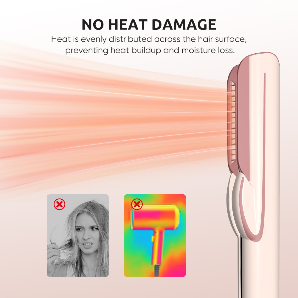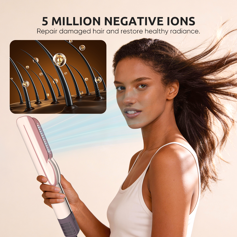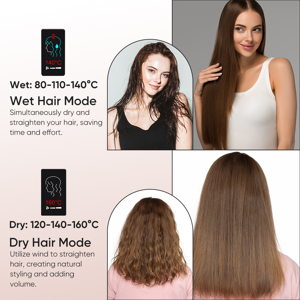 Professional Styling Tool LCD Display 2 in 1 Wet to Dry Hair Dryer and Straightener with High Speed Air (Pink)