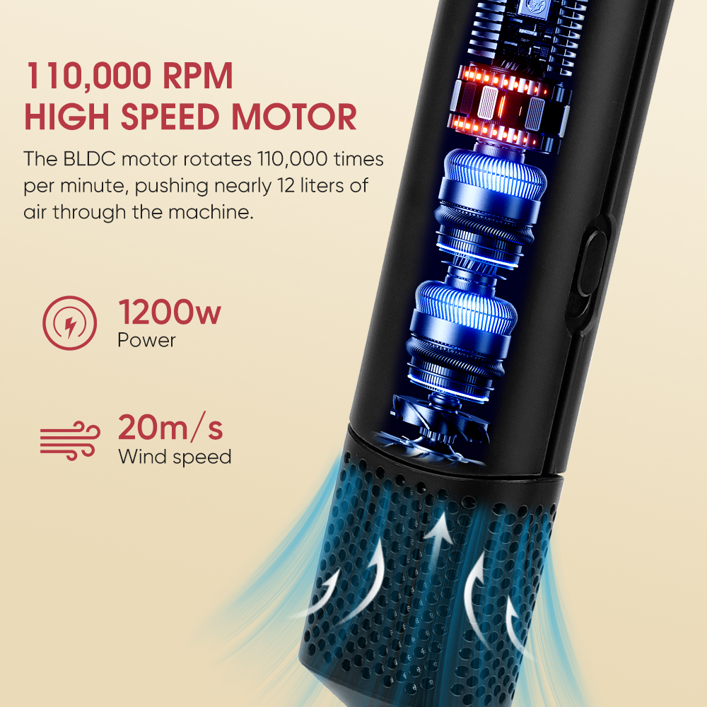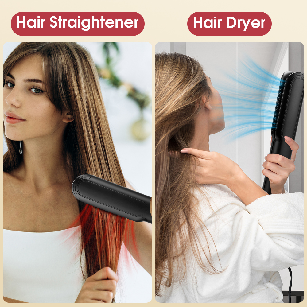 2 In 1 Straightener: 110,000 rpm high speed motor, up to 20m/s air speed, Ultra fast enough for wet to dry and straightening hair simultaneous in one tool.