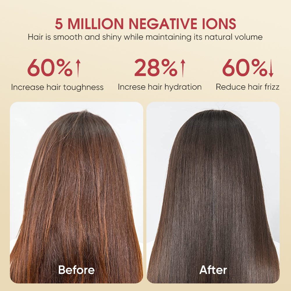 No heat damage: Our advantage is lower-temperature, higher-speed ionic air wind straightening. It straightens and protects the hair without damaging the protein structure of the hair. The entire process does not require extreme heat which helps maintain your hair's strength and reduce breakage, ensuring retain natural moisture from root to tip.