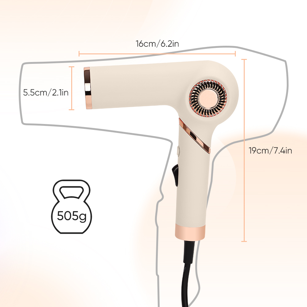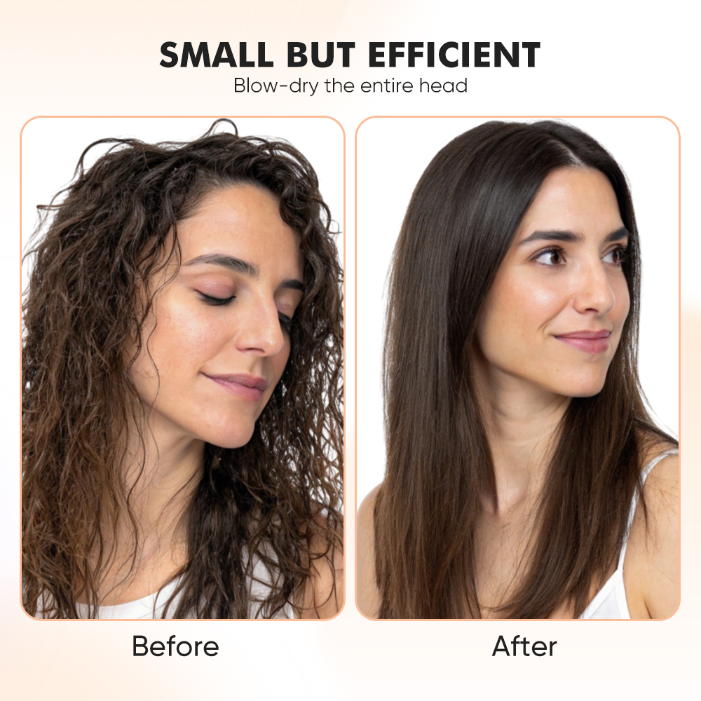 【Lightweight and Compact】 Weigt only 510g, this blow dryer boasts a distinctive compact contour design with a volume of about half that of a typical hair dryer. Its collapsible design makes it the epitome of convenience, effortlessly fitting into your travel essentials.This travel blow dryer's compact proportions and gentle presence make it the ultimate companion for those seeking a portable, yet powerful, styling experience.