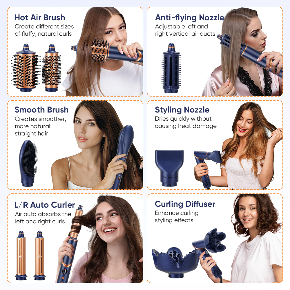 New Launch 8 in 1 Hair Styler Professional Hair Dryer 110000rpm High Speed Blow Dryer Brush Ionic Multi Styler(Dark Blue)