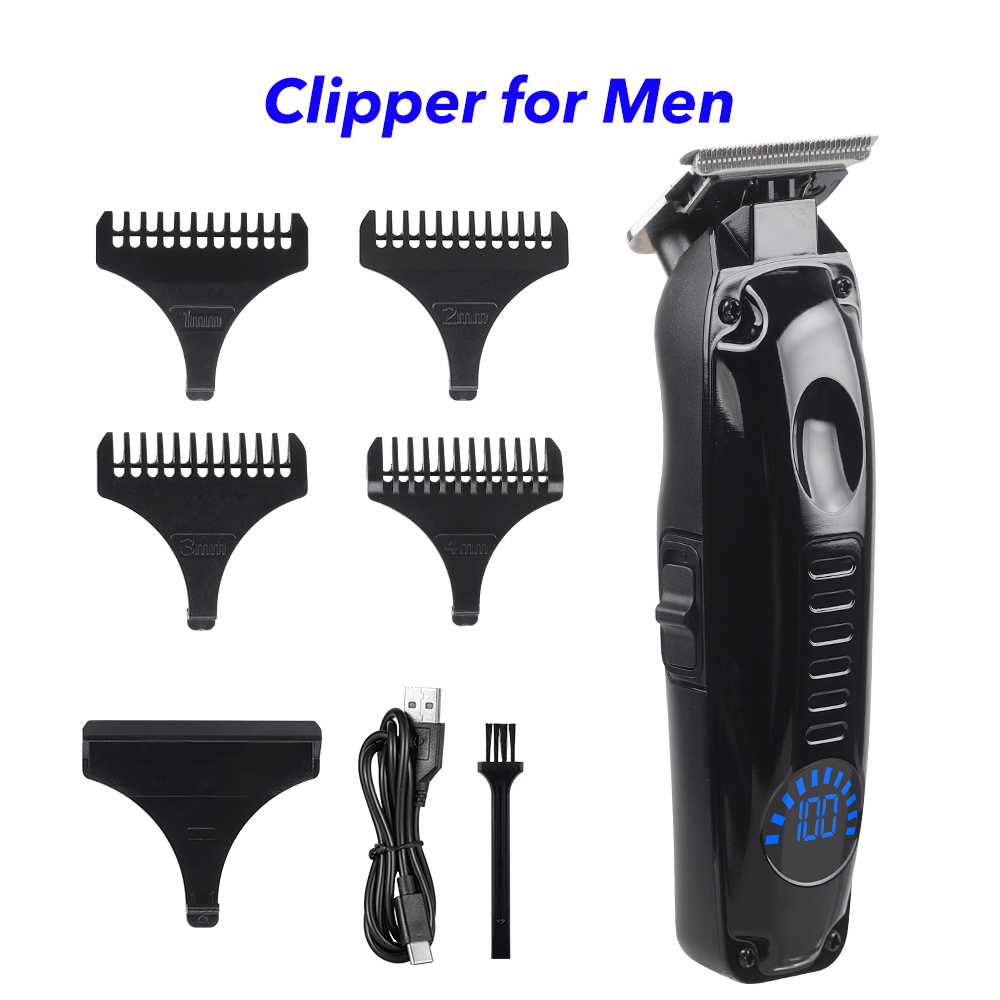 Portable Barber Electric Cordless Hair Removal Rechargeable Hair Clipper and Trimmer with Smart LED Display(Black)